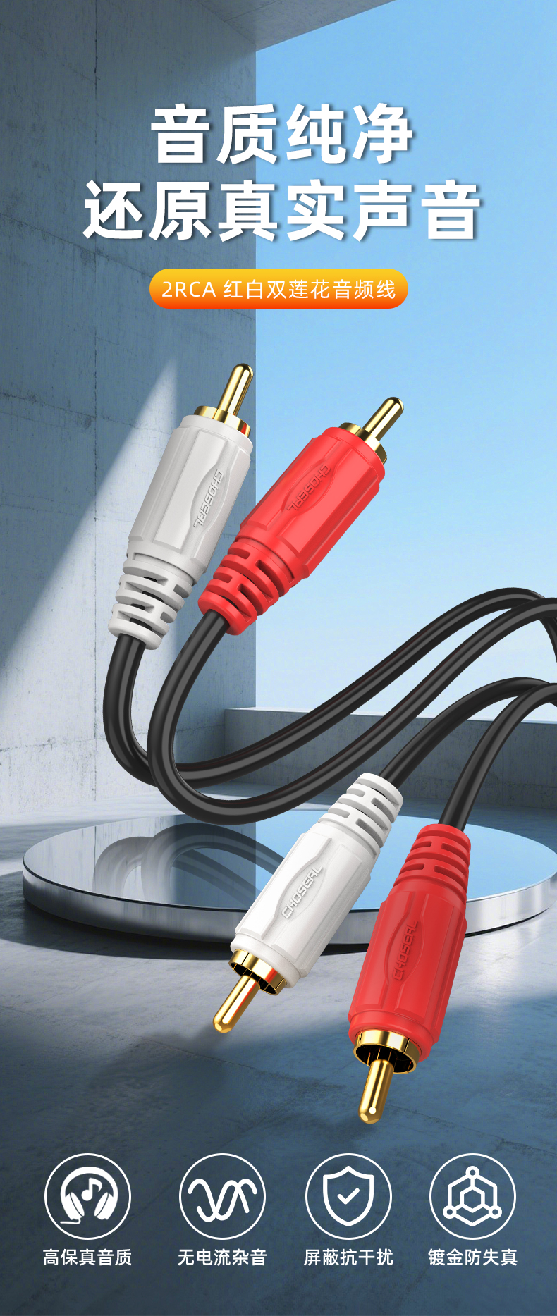 2RCA紅(hong)白双莲花(huā)音频線(xiàn)