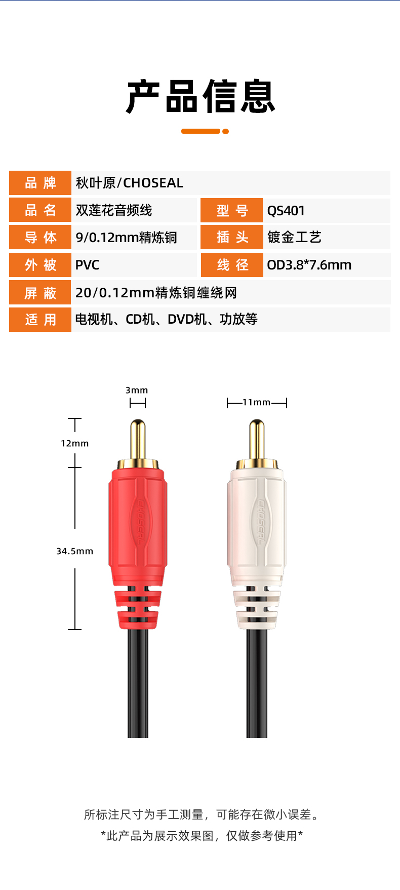 品(pin)名(míng) 2RCA紅(hong)白双莲花(huā)音频線(xiàn)